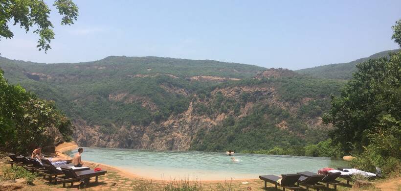 Большинство туристов ассоциируют Гоа с пляжами, солнцем и экскурсиями. Однако у штата есть и другая сторона — горный отдых в джунглях Западных Гхат. Здесь можно ощутить полное уединение и тишину, наблюдать потрясающие панорамы и дышать свежим прохладным воздухом, когда на побережье жара достигает +35 °C. Если вы не знаете, что посмотреть в Гоа кроме моря — отправляйтесь в горы. На высоте около 800 метров вас ждут эко-коттеджи с видом на долину, тропические птицы, закаты и рассветы, а по вечерам — национальные танцы. В программу включено проживание в коттедже, трёхразовое питание и трансфер. Также включена программа: лепка из глины, роспись хной рук, танцевальная программа местных племён, поход к водопаду с натуралистом