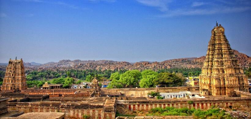 Хампи — уникальное место в штате Карнатака, которое два столетия было сердцем одной из самых могущественных империй Индии — Виджаянагарской. Основанный в 1336 году святым Видьяраньей и братьями Харихара и Букка, город стремительно превратился в культурный и торговый центр Южной Индии. Путешественников поражали величие храмов, роскошь дворцов и мощь укреплений. В 1565 году объединённые армии султанов Деккана взяли город, и после разграбления он утратил статус столицы, превратившись в «каменную летопись» под открытым небом. Сегодня Хампи входит в список Всемирного наследия ЮНЕСКО и остаётся местом, где сельская жизнь соседствует с древними святынями.